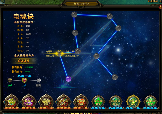 法诀星图经验:每次尝试点亮法诀星图,失败与否自己都可获得经验加成及祝福值,祝福值可以让你在点亮法诀星图的时候成功几率更大。